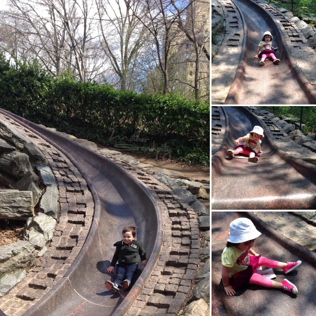 Personally, I keep a hand towel, a few plastic cars, and a bit of sidewalk chalk with me in a ziplock bag in all but the dead of winter. With a touch of imagination and these few items, the possibilities are endless at pretty much any one of Central Park’s amazing playgrounds.