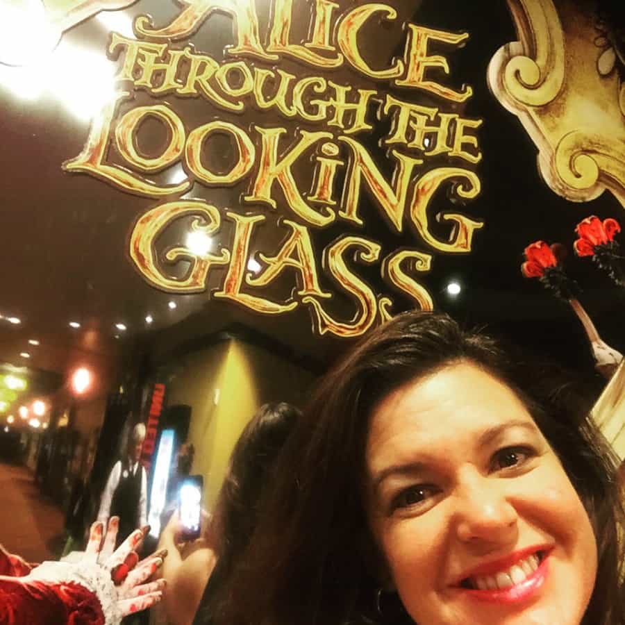 While at the Disney Social Media Moms Celebration, I had the honour of not only hearing from Suzanne Todd, Producer of Alice Through the Looking Glass but also being part of the second audience to ever screen the film.The empowerment of women reigns throughout this technically magnificent spectacle. As a former actor, it’s difficult to imagine acting in front of blue screens with only red X’s on which to direct your gaze. We saw Mia Wasikowska (Alice) filming her scenes and I was in awe at how she had to create scenes inside her head in order to find her reactions to events without another human being feed her their lines or emotional expression. We also got a peek at Alice Through the Looking Glass Costumes in real life.