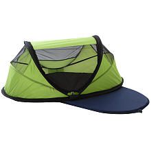 Unlike the hardier and bulkier play yards of our youth, the PeaPod Plus Baby Travel Bed is more like a “travel cocoon.” The mattress is inflatable and, when baby is finished sleeping, can be folded into a compact tote for easy carrying; no more lugging around the heavy pack-n-play! This travel bed is also outdoor-friendly: the mesh bubble blocks bugs, wind, and half of the UV rays. The mattress inflates in less than 5 minutes using the a specific pump (sold separately by Leaps and Bounds).