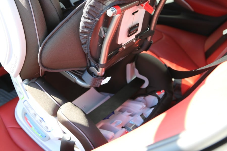 The 7-position recline with automatic level indicator adjusts for proper recline rear-facing or for comfort and the best vehicle fit forward-facing. Don’t you wish you had that in the drivers’ seat?