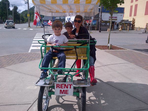 “I’ll meet you at the Bear.” (That would be the 5 foot high stuffed one in the lobby of the Harrison Springs Resort and Spa.) I just loved saying it. Invited for a spring night’s getaway, my two boys and I made the short drive up Highway 1 from Vancouver to Harrison and as my lovely Welsh friend says, I was gob-smacked. A broad lake with an enticing bright yellow slide and bouncy play contraption floating off the beach greeted us as we drove into the resort. A dock for boating and fishing activities anchored the quaint town filled with painted Sasquatch footprints and pedicabs built for 5 ($25/hour, Jamie’s Quadricycle Rentals, 604-703-8951). The shopping in this mining area was great for gifts, and I was able to pick up several specimens of ‘gems’ as a birthday gift for a future geologist.