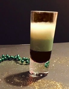 Layer equal parts green crème de menthe, Bailey’s Irish Cream and Grand Marnier.