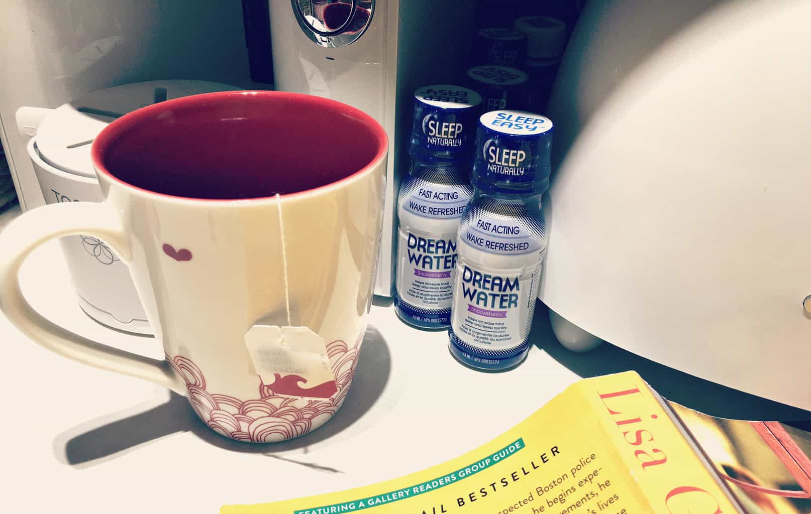 That means I’ll be turning off the screen earlier, getting some exercise and trying to get things put to bed before I go to bed. Maybe I’ll even start preparing lunches and outfits the night before…maybe. Either way, my Dream Water has a permanent home on the counter, next to my teacup, aka. my daytime support team.
