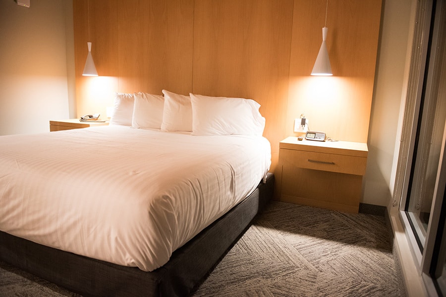 We pulled into the Penticton Lake Resort at the time Enform had promised, and deposited our bags into rooms at the newly constructed West Wing. Open to the public since June 2017, the West Wing is a wood primary building that stands 6 stories, with 70 rooms (20 of which are suites), and weighs approximately 40% less than that of what it would if made of concrete. Stunning local art can be found all throughout the Wing and our rooms were large, luxurious and cozy. The heated floor in my bathroom was the perfect way to step out of a shower and the king-sized bed was an invitation for me to starfish through the night happily.