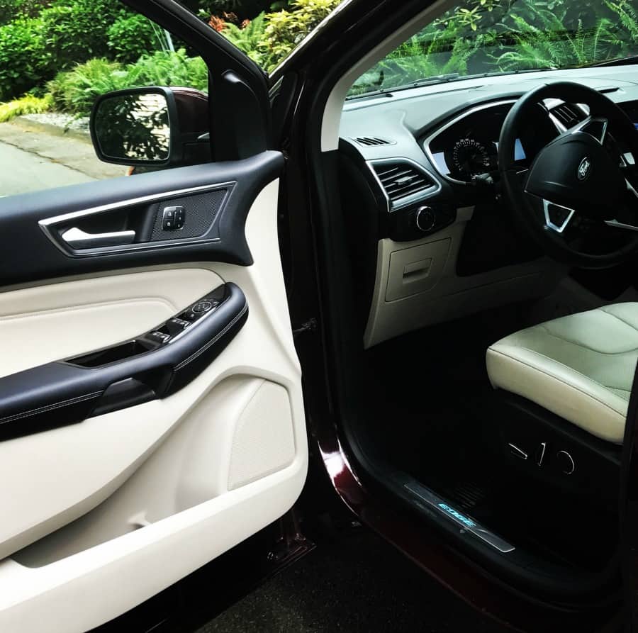 I recently took the Ford 2017 Edge Ti for a spin and I was quite impressed. When I was behind the wheel, I felt as if I was driving the Batmobile or an F1 car even though I was at a normal height from the ground! The brightness of the interior as you get into the vehicle was immediately apparent, given the extra large sunroof that spans the length of the car.