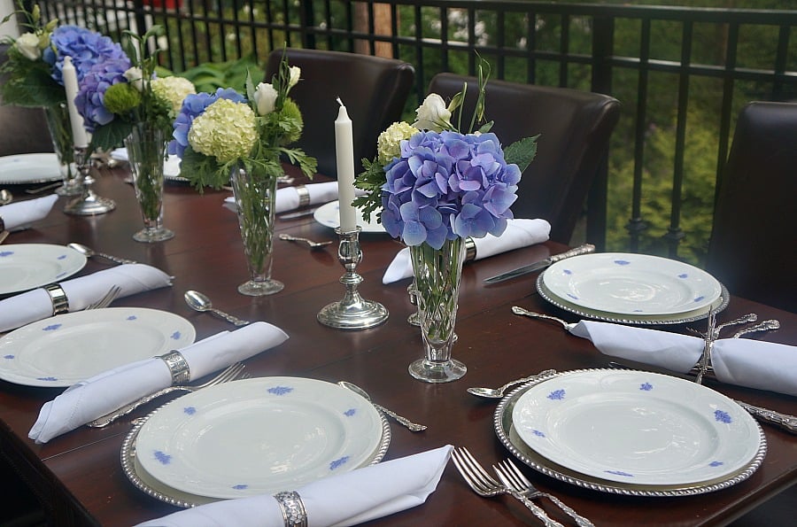 Decor-wise, I set a more elaborate table with the time saved from cooking, giving each of the girls a little macaron treat for dessert. You can always use silver and crystal to heighten even the simplest of food evenings. Flowers, too, set in crystal glasses balanced the table. Flowers always give an evening a special flair, and we have a few easy arrangement tips to help you assemble quick arrangements.