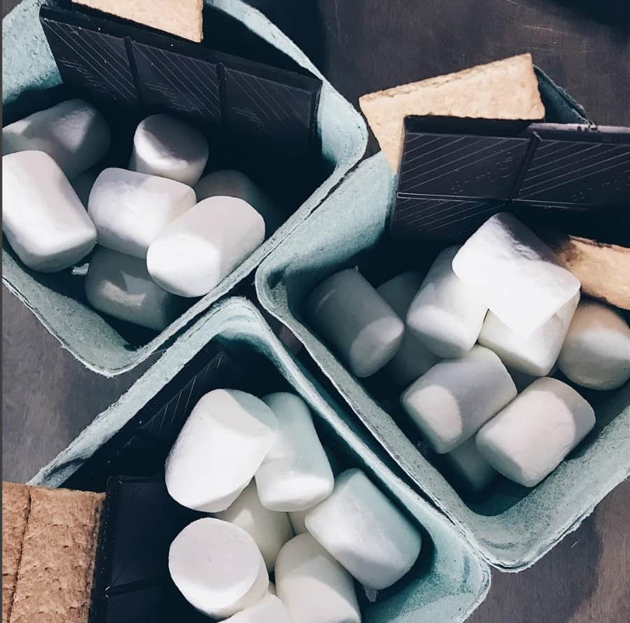 Individual s’more baskets are perfect for marching to the BBQ. A popcorn and candy bar is also fun for kids. Treat cones are a fun and colourful way to serve, but spillage can be an issue. I love inexpensive mason jars with lids. You can also serve edible ice cream cones filled with candy. For dinner items, covered jars are an easy choice that keep the pests away. There’s also no cleanup as raccoons will eat all the leftovers!