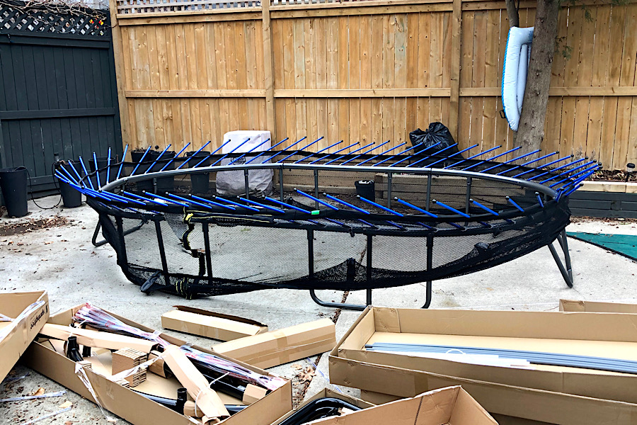Springfree Trampoline DeliveryWe raced back from Miami with sweaty palms worried we wouldn’t be allowed back into the country or would have to be quarantined in a facility. The kids sensed the level of anxiety in us. When we returned safely and healthy, the first thing I did was email Springfree asking if we could move up the delivery date in order to get our trampoline sooner. This was the best thing that ever could have come out of this crisis. We were no longer getting a trampoline so that the kids could adjust to their new life in Toronto. We were getting the trampoline so that the kids would be gifted mental and physical health. So that we could be safe and not put others in danger by going out of our yard.
