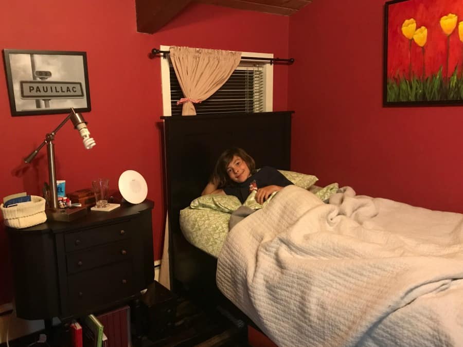 Sick of being late for school and track practices, I devised a plan. I’d tested the Philips Wake-up Light (model HF3505_50) in my own room, but selfishly never considered getting them for the boys as well. Independent research shows that 92% of Philips Wake-up light users find it is easier to get out of bed in the morning. PLEASE let my kids be in that percentage! The light gradually changes so even when it is dark and there is pouring rain outside, the light mimics a beautiful sunrise.