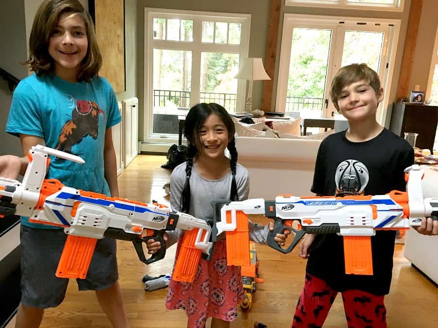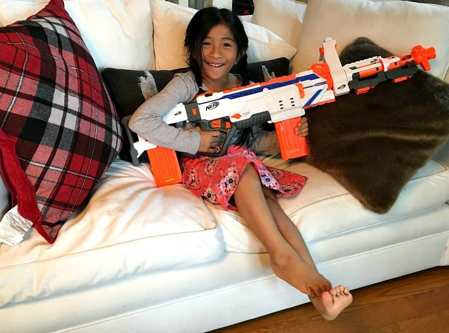 The kids also loved unwrapping two Nerf Modulus Regulators ($48 each). Two blasters and three kids also stimulated the imagination, as fingers became additional blasters, and other spy tactics were explored.