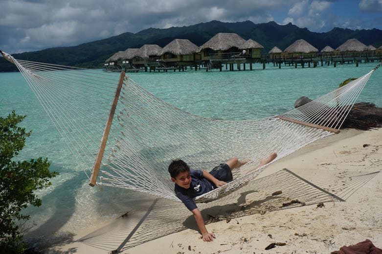 Le Vanille is the main restaurant and is located high in the treetops overlooking the pool and over-water bungalows. Taha’a island (translated into ‘moto’) is famous for vanilla plantations, and you can purchase beans and powder in the gift shop. We ate at Le Plage, directly beside the pool area, and the salad, fish and carpaccio below were all served with obviously incredible presentation. Of course, the ice cream was the big hit with our two boys!