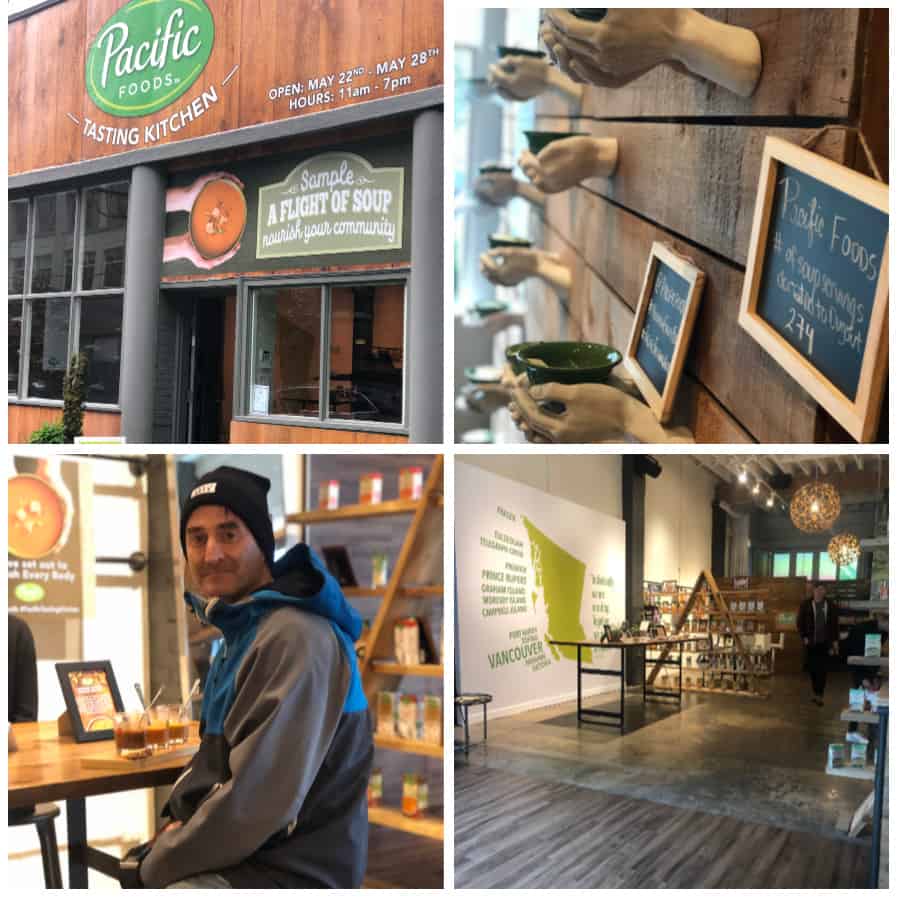 When we think about nourishment, most people know how to balance a good meal and many can also afford a few spinach leaves here and there. BUT… there are millions of people all over the world who can’t. Pacific Foods has always been one of the most socially-conscious companies in Canada. Their employees volunteer hundreds of hours, they have a zero-waste target that has almost been reached, and the company has always followed sustainable practices to ensure kinder treatment of people, animals, and the planet. They also just treated the public and a local charity to a fun and nutritious pop-up. The Pacific Tasting Kitchen was a public “soup-kitchen” in Yaletown, where for every sample of mouth-watering soup given out, another sample was donated to The Dugout, a local soup kitchen in the YVR Downtown Eastside. The charity provides a free soup breakfast every morning to 200+ people in the neighborhood. I feel so very lucky.
