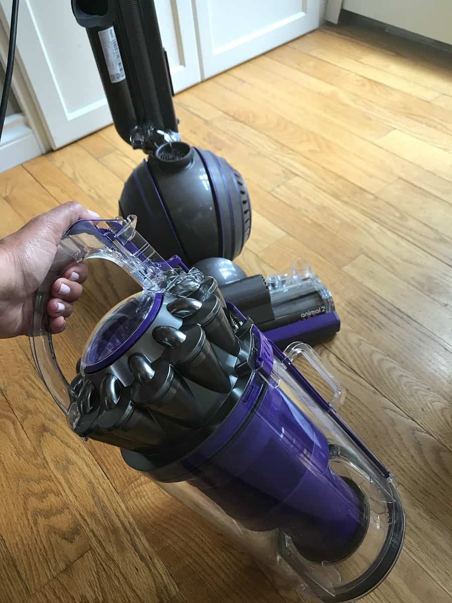 canister-removal-dysonThe unit as a whole was easy to maneuver, and because so much of the mechanics are in the Ball, the balance of the whole machine is really good. The low centre of gravity and the swivel technology made for an easy cleaning job. I guess the only drawback is that I won’t burn as many calories as I used to!