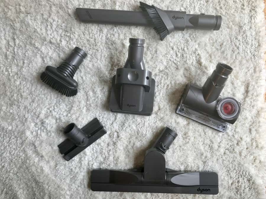 dyson-ball-animal-attachmentsThat insecurity lasted all of 90 seconds. I had the parts snapped together and the extendible wand was so easy to take out and replace. The parts also snapped on and off the wand easily and without me having to break a nail doing it. There are buttons to allow you to switch attachments with one hand. Finally, I could clean the curtains! The spiderwebs off the wall!The undersides of the carpet! And the dog. Holy animal lover. This magic vacuum has a pet groomer attachment! My shedding English Lab may actually be comfortable for once – and I won’t get a mouth full of fur whenever I snuggle her!