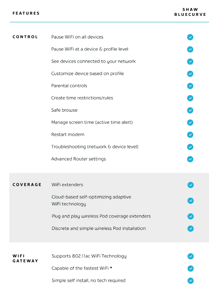 Shaw BlueCurve is a simple and powerful new technology that gives customers more coverage and greater control over their home Wi-Fi experience.