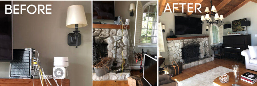 Additionally, my makeshift solutions of the past (see photo below) meant wires, boxes and cords were choking my living room mantel and clean design was non-existent. The BlueCurve system gave us a Zen living space.
