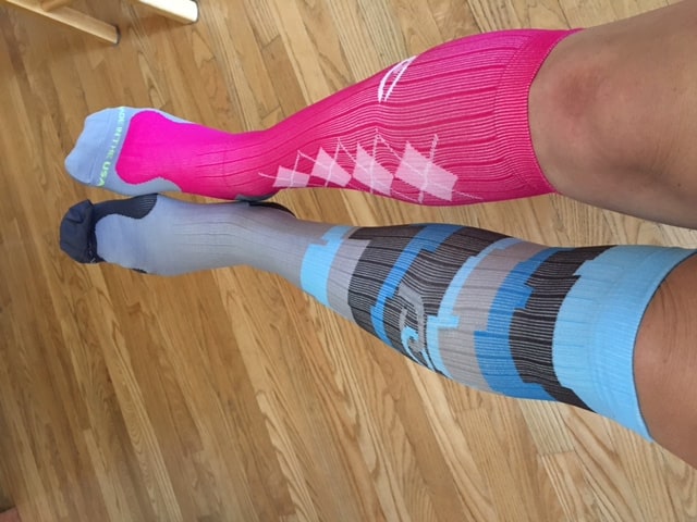 I’ve had some injuries in the recent months and have finally made the choice to really focus on recovery and prevention. In the past I’ve used compression socks for longer runs – those 20 mile training runs – during and (a clean pair) after. The increased circulation makes a lot of difference for me. I’ve never been completely happy with any pair of compression socks I’ve tried. Either they are too long, roll down, or aren’t tight enough.