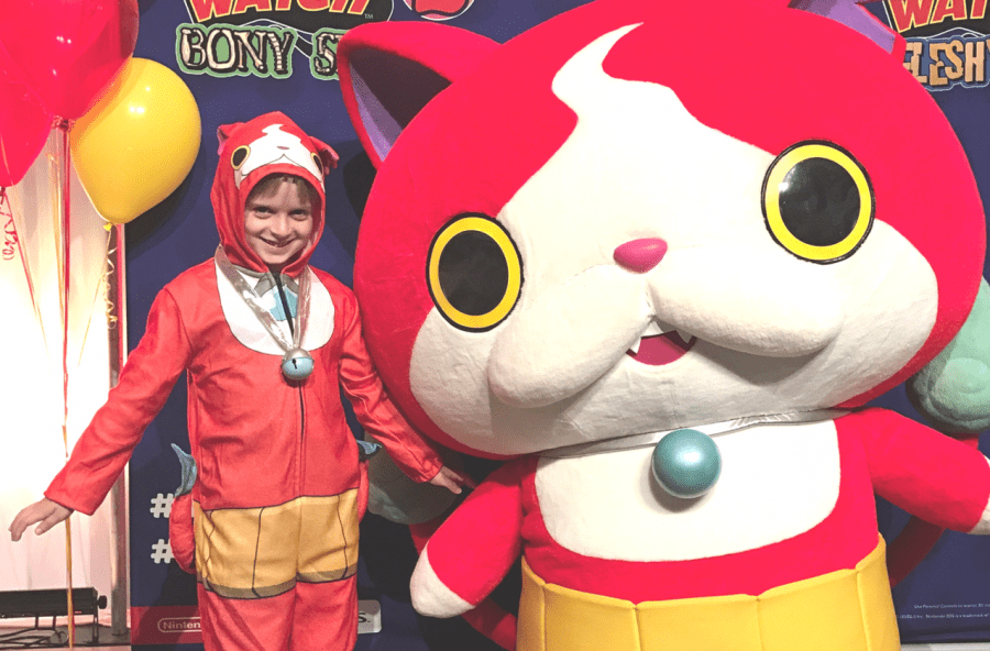We recently had the pleasure of bringing him to the Nintendo Launch of Yo-Kai Watch 2 here in Toronto thanks to a former work colleague who knew about his young fan boy passion. My son wore his Halloween costume and let them know “what an honour it was to be invited” as he shook hands with the Nintendo reps. He had the chance to preview the game, watch Episode one of the new season of the cartoon, and try out the new Yo-Kai Watch Model Zero toys from Hasbro. He also got to invite a friend from school – a friendship that has developed thanks to a shared love of all things Yo-Kai.