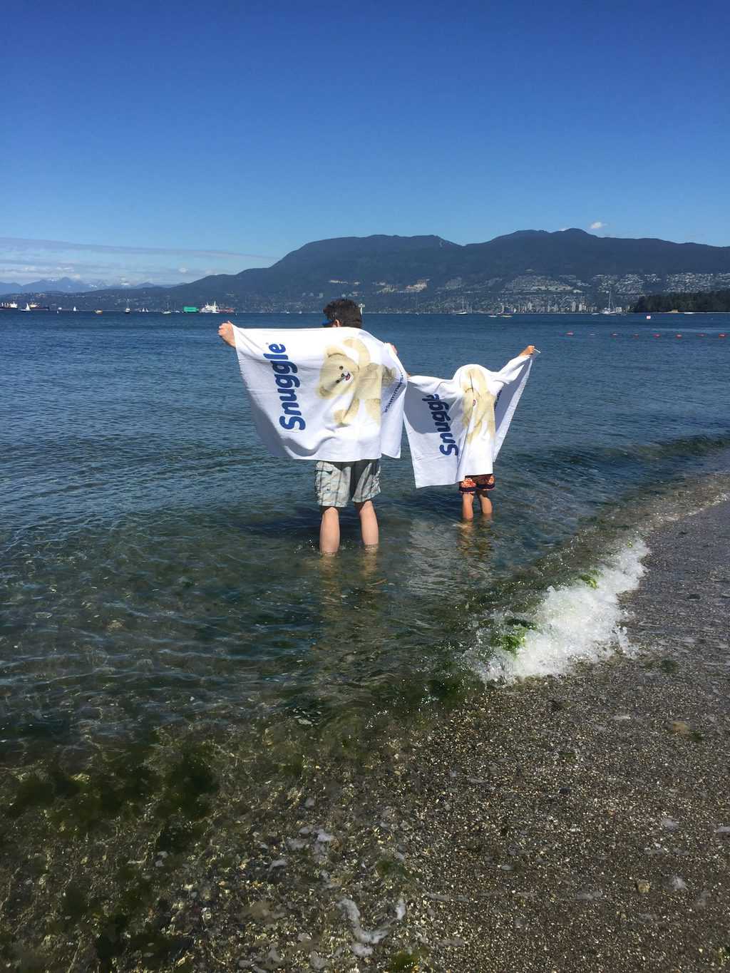 We visited Kitsilano Beach, which is an excellent spot to take families as it boasts a pool in addition to the beach, and is an inexpensive way to spend time together. We were given some fluffy beach towels that had been treated with Snuggle (which is a GREAT household product that delivers MORE SNUGGABLE SOFTNESS when compared to the leading fabric softener*), which came in very handy at the beach.