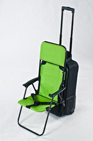 Traveling with little ones is made easy with this convertible children’s chair that comfortably snaps onto carry on luggage. Perfect for rolling your child through the terminal and right to their seat. The padded headrest can be pulled down for use as a tray table. The chair folds flat without removing so it can fit through security and in the overhead storage compartment.