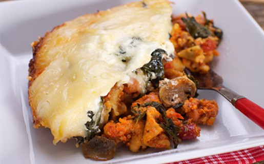 NOTE: Catelli’s Healthy Harvest line features whole-grain lasagna noodles. Be sure to choose a pasta sauce that lists tomatoes as the first ingredient.
