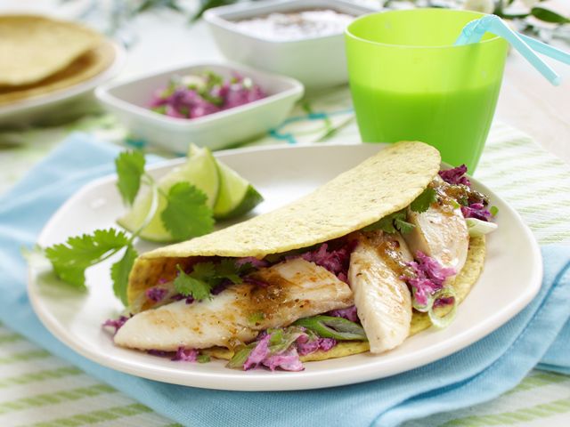- To assemble, fill tortillas with slaw, fish, salsa and coriander.