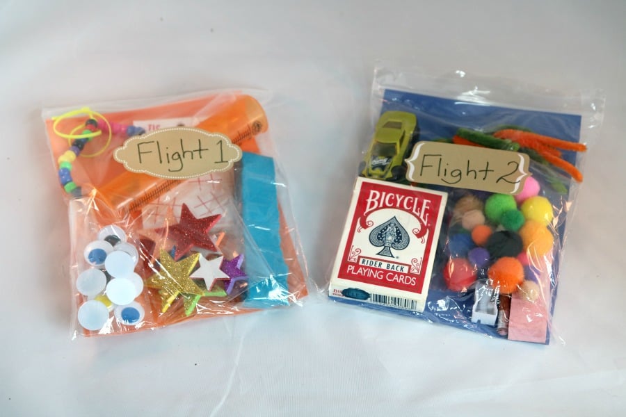 3. Individual flight activity bags with written ideas for each bag allow kids can be excited each time they change planes. Sandwich-sized ziplocks fit perfectly in a seat-back pocket. If you’re totally keen you could calculate how many hours of minutes of play they can do with what is contained in each bag. Oh – and glue stucks on planes are a better choice than the runny kind. So I’ve heard.