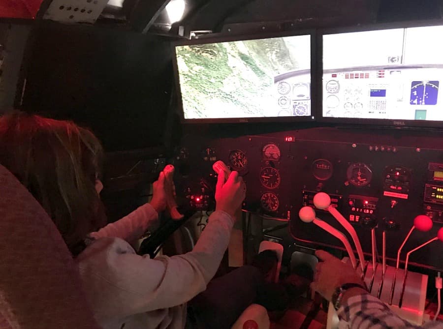 There is a wind tunnel on site, but my son was so distracted by the flight simulator built into a hollow aircraft fuselage, that he could hardly contain his excitement.