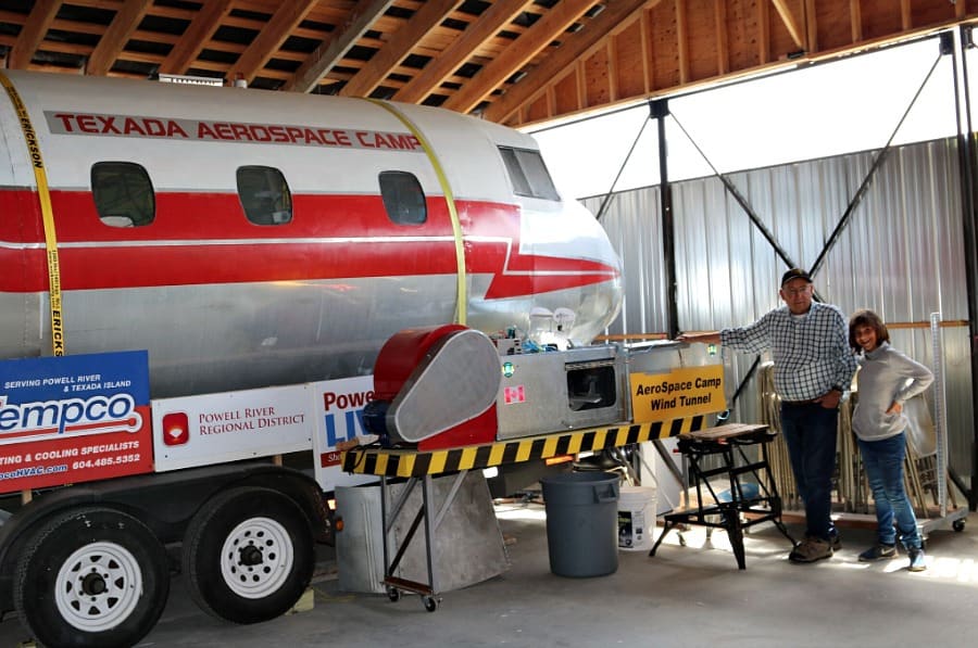 Ford started his tour in the extensive aviation library and then did a double-take when he saw the four-shelf collection of model airplanes donated to the Texada Aerospace Camp. As we went to the wooden plane to learn about lift and flaps, I noticed an engine used for learning and teaching. For my full story click here >>