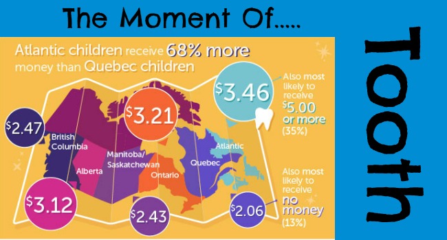- Children in the Atlantic provinces receive a generous average of $3.46 per tooth