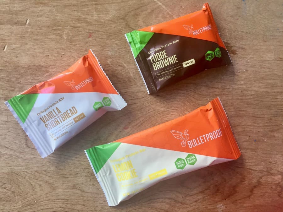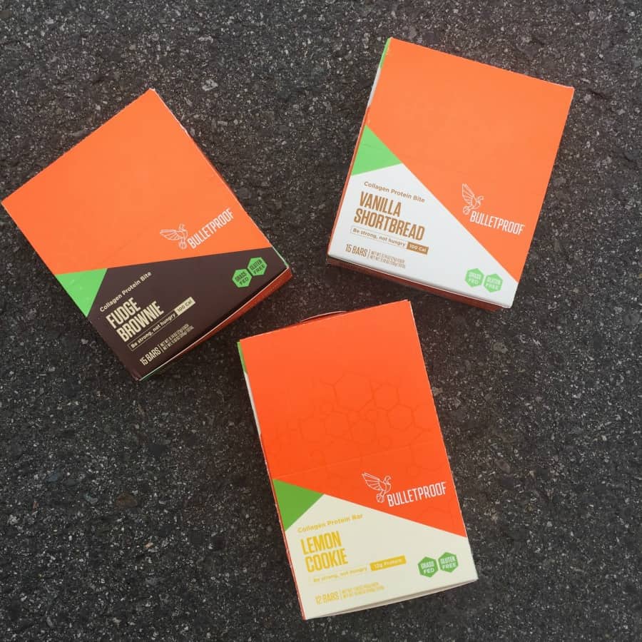 My protein bars have also changed. Now Bulletproof is producing Lemon Cookie protein bars along with fudge brownie and vanilla shortbread protein bites. They come in pocket-sized packages that are highly coveted by my two sports-obsessed monkey kids.